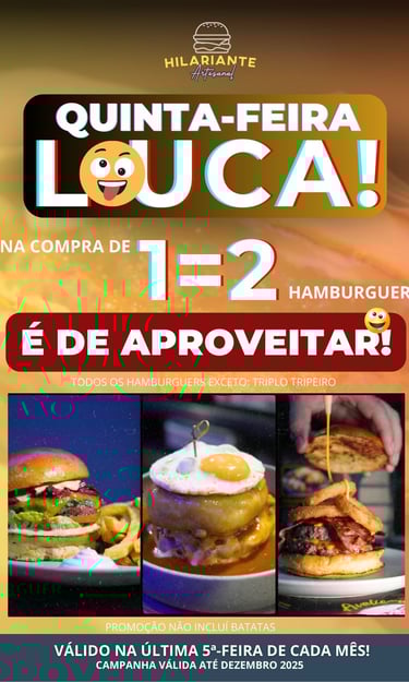 Comecei a colaborar com o Hilariante Burger em novembro de 2024, num momento em que a marca procurava renovar a sua imagem e ganhar maior consistência no digital. O primeiro passo foi transformar a comunicação visual: reformulámos toda a estética das redes sociais, criámos uma linha gráfica mais moderna e coerente e ajustámos o tom da marca para algo mais profissional, divertido e alinhado com o conceito do restaurante.